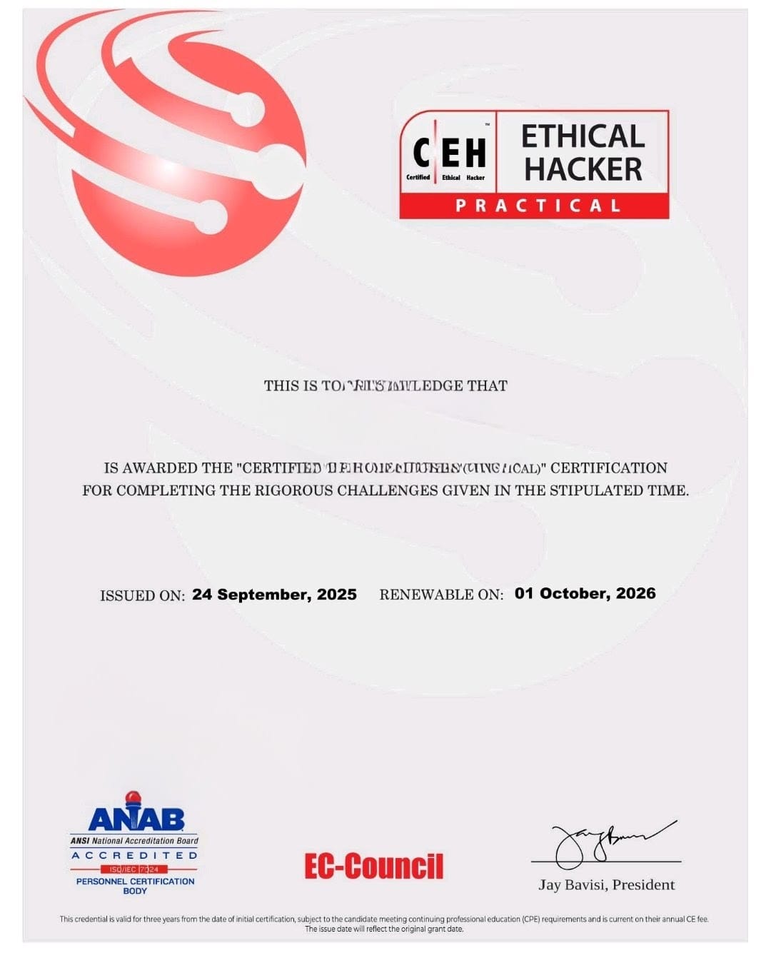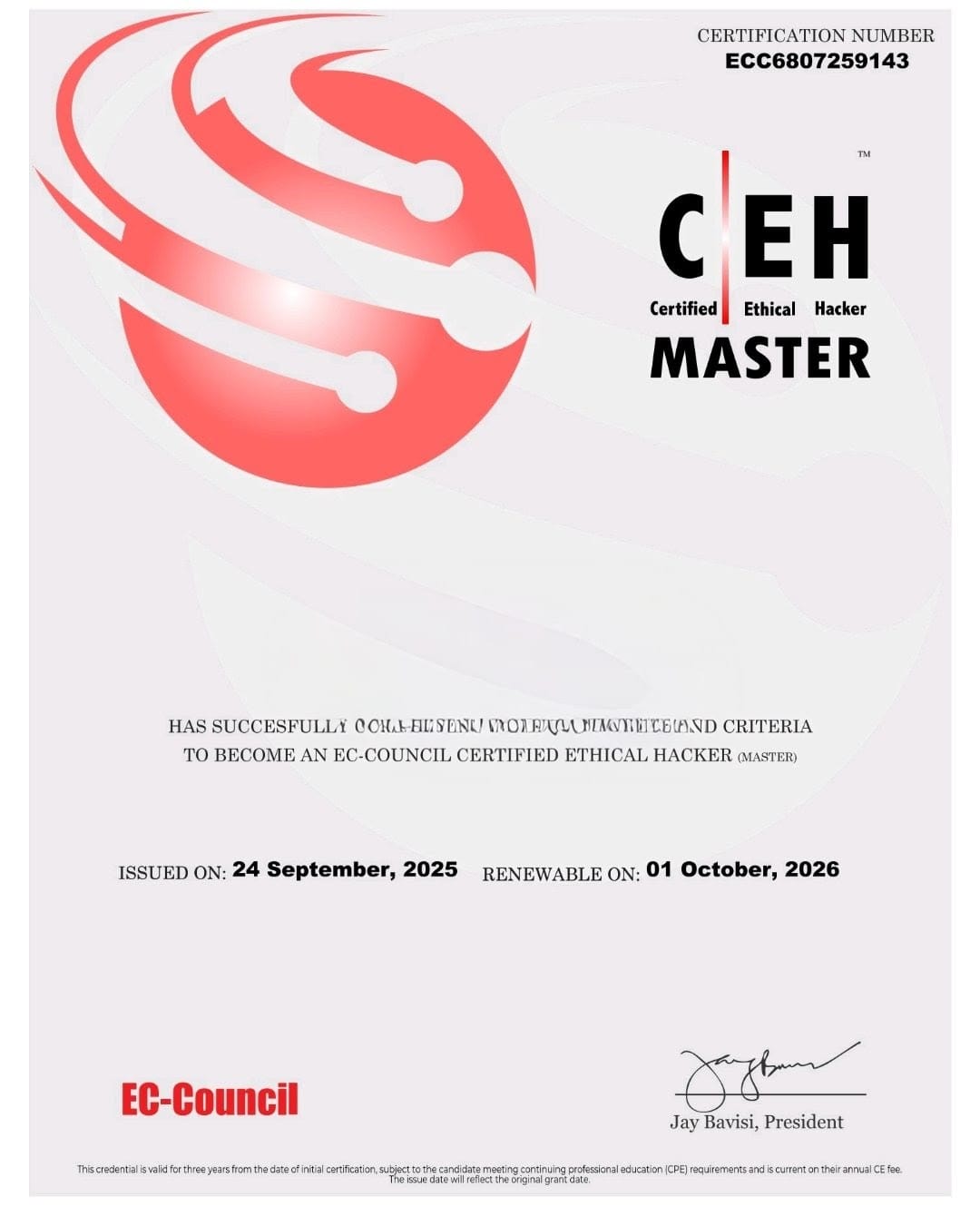 | EC Council Certifications | CEH v13, CEH Practicals, CEH Masters | CSCU, CND v3 | CSCU, CND v3, CEH v13, Cpent v2+LPT, CHFI v11 |